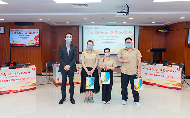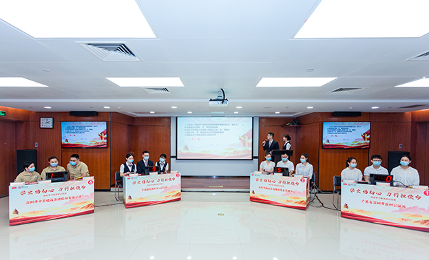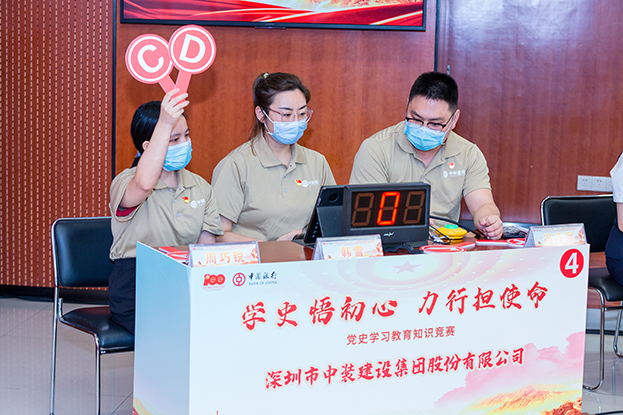 5月28日下午,中裝建設(shè)聯(lián)合中國銀行深圳中心區(qū)支行、深圳市物業(yè)專項維修資金管理中心、深圳市深圳公證處共同舉辦了以“學(xué)史悟初心 力行擔(dān)使命”為主題的黨史學(xué)習(xí)教育知識競賽。中裝建設(shè)及三家共建單位黨委班子成員、四家單位黨員代表參加本次活動。