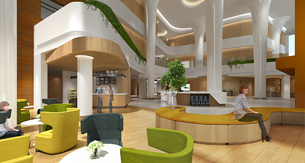 合肥離子醫(yī)院中心是合肥綜合性國家科學(xué)中心七大創(chuàng)新平臺(tái)之一,位于合肥高新區(qū)燕子河路與長寧大道交口,總建筑面積約3.3萬平方米。在本案設(shè)計(jì)中,中裝建設(shè)以患者為中心,以“水”為主題,通過曲線空間帶來舒緩的氛圍,營造一所集家具、庭園、社區(qū)于一體的且兼顧私密性的健康中心。此外,公司通過運(yùn)用BIM技術(shù),使抽象化的施工更加簡單化、更加直觀化、更加高效。